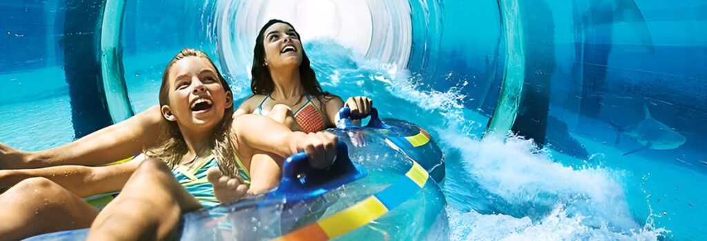 If you book Aquaventure with Lost Chambers now, you will get The Palm Mono Rail Ride for free. The Palm Mono Rail Ride is a monorail that takes you on a scenic tour of Palm Jumeirah Island. It offers stunning views of the island and the surrounding areas.