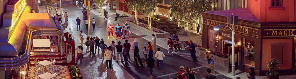 - At the Warner Bros Plaza, you’ll journey back to the classic vintage era of Hollywood.