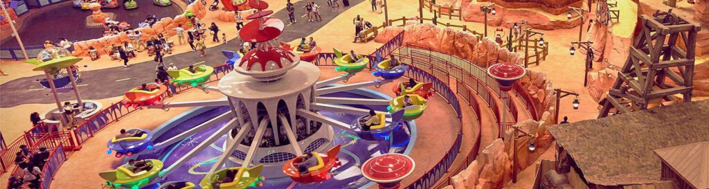 Cartoon Junction will instantly become your kids’ favorite land, as they take to the fun-filled Tom and Jerry: Swiss Cheese Spin, explore the Scooby-Doo: Museum of Mysteries and take in many highlights based on their favorite cartoon characters such as Bugs Bunny, Hanna Barbera, Loony Tunes etc. At Bedrock, you’ll step back to the Stone Age; this not only allows you to meet the wonderful cave family members from the iconic Flintstone show but also enjoy a variety of incredible rides. Finally, there is the exuberant animated land of Dynamite Gulch, filled with rides and attractions, particularly themed around the ever-popular duo, Wile E Coyote and Road Runner.